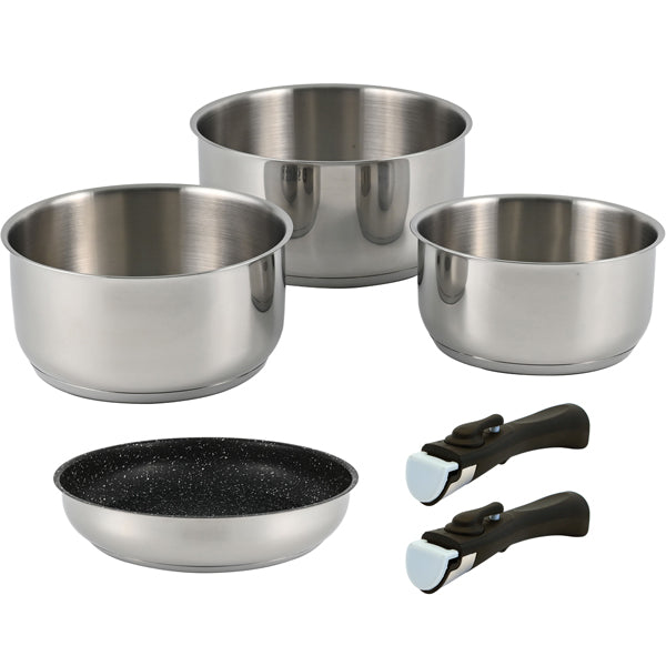 1852, 6-teiliges Pfannenset mit Antihaftbeschichtung und abnehmbaren Griffen, Edelstahl