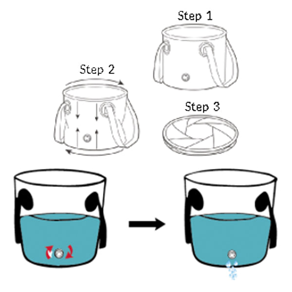 Der Eimer ist mit einer Wasseranordnung an der Unterseite ausgestattet, die es ermöglicht, Wasser einzufüllen und die Einheit zu öffnen, um eine Dusche zu erhalten. Zudem verfügt er über Kunststoffrohre an der Oberseite, die die Öffnung unterstützen, sowie Tragriemen für einen einfachen Transport. Eine ideale Lösung für alle, die praktische Anwendbarkeit mit Tragbarkeit kombinieren möchten.