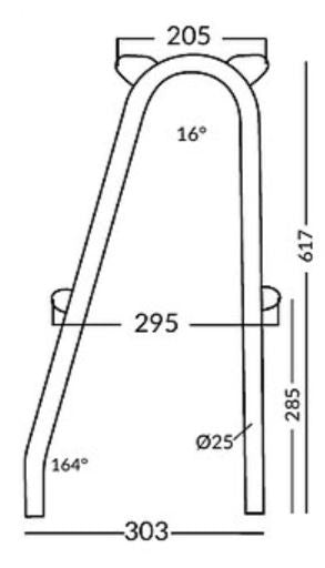 1852, Handlaufhalter RF 613mm, Ø25mm AISI 316