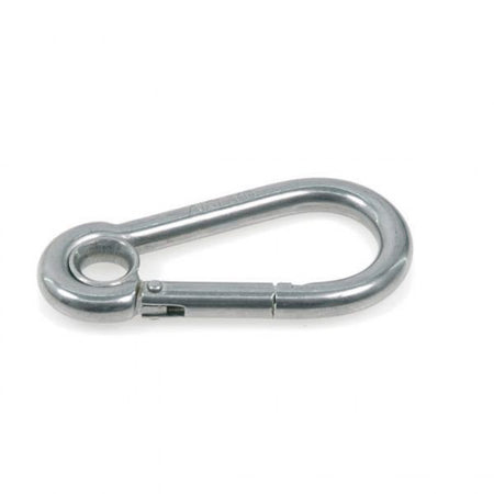 Der Karabinerhaken ist mit einer Öse ausgestattet, die zwei Einheiten voneinander trennt, was ihn ideal für eine Vielzahl von Anwendungen macht, einschließlich Segeln, Klettern und anderen Outdoor-Aktivitäten. Er besteht aus AISI 316 rostfreiem Stahl, der Korrosions- und Abriebfestigkeit gewährleistet.