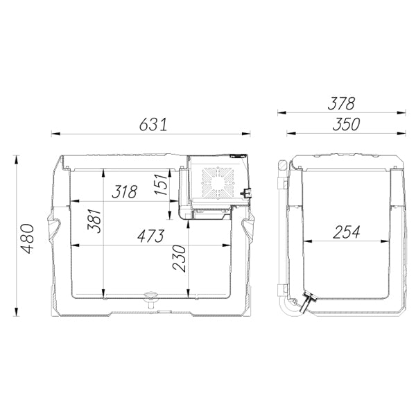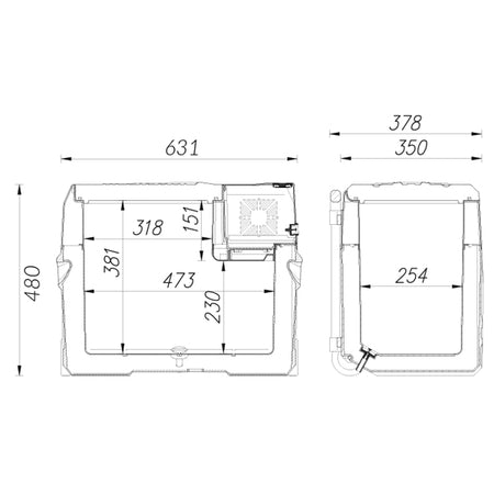 - Abmessungen: Breite: 37,8 cm, Höhe: 48,0 cm, Länge: 63,1 cm