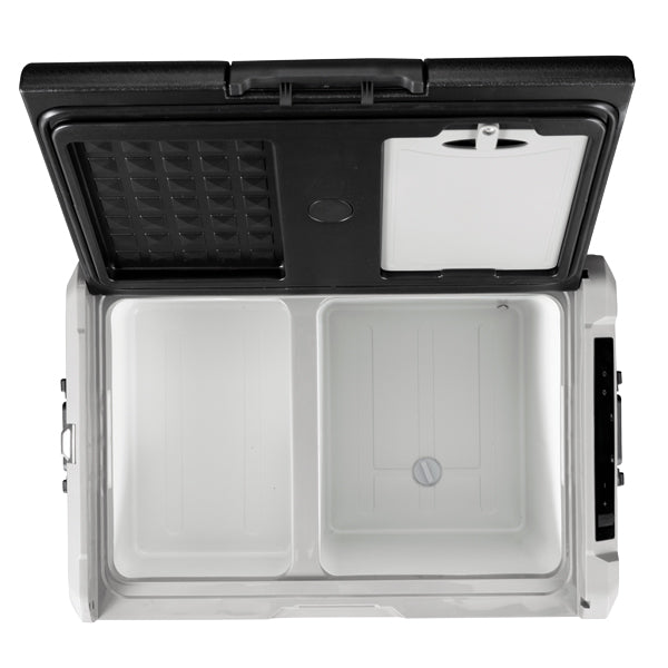 Die Kühlbox ist mit robusten Tragegriffen und einem LCD-Display ausgestattet, das die Temperatur anzeigt. Der Deckel kann von beiden Seiten geöffnet werden, was zusätzliche Flexibilität bietet. Im Inneren finden Sie ein LED-Licht, das automatisch angeht, wenn der Deckel geöffnet wird, sodass Sie leicht finden, wonach Sie suchen.