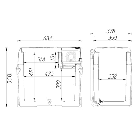 - Abmessungen: Breite: 37,8 cm, Höhe: 55,0 cm, Länge: 63,1 cm