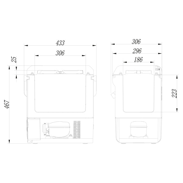 Die Kühlbox ist für den Betrieb mit 12/24V DC ausgelegt, was sie sowohl für Autos als auch für Wohnmobile geeignet macht. Sie ist mit einem effizienten LG-Kompressor ausgestattet, der eine zuverlässige und schnelle Kühlung gewährleistet. Mit einem Gewicht von nur 8,0 kg ist sie leicht zu transportieren, sodass Sie sie überallhin mitnehmen können.