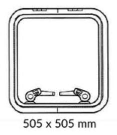 1852, Marine-Luke mit niedrigem Profil aus Aluminium, Ausschnittgröße 505 x 505 mm