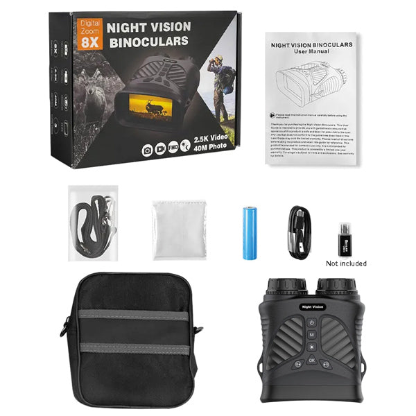 1852, Nachtsicht-Fernglas, 4fache optische Vergrößerung, 8facher digitaler Zoom, 300m Erkennungsweite, 40 MP, 4K UHD Video, USB-C, Schwarz-Weiß-Nachtsicht