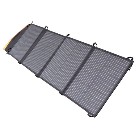 Das Panel kann flach platziert oder schräg aufgestellt werden, dank der integrierten Beine, die optimalen Sonneneinfall gewährleisten. Mit den mitgelieferten Riemen können Sie das Panel einfach befestigen, sodass es während des Gebrauchs stabil bleibt.