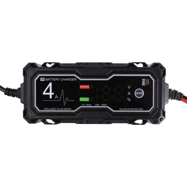 Til standard bilbatterier (40-80 Ah) er 4A lige det rigtige – sikker og effektiv opladning.
