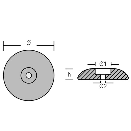 1852, Zink Rundanode Ø50mm 83g für Fairline/Sealine, 11mm hoch, 20mm Ø1, 6.5mm Ø2