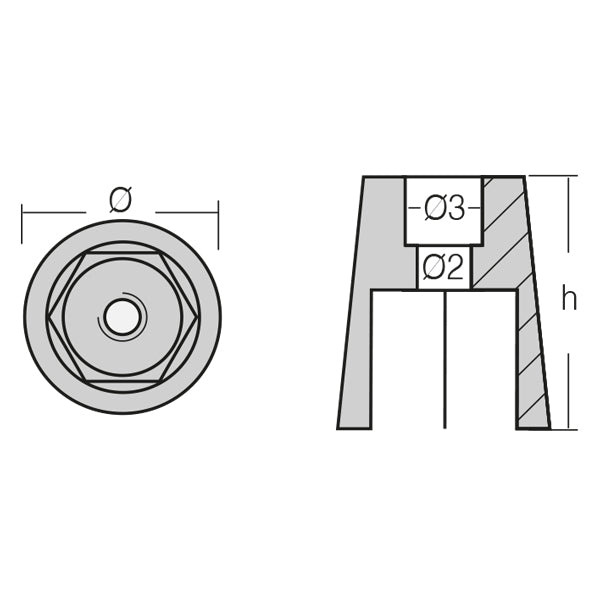 1852, Zinkanode für Sechskantschaft 40mm, 67mm h, 1141523