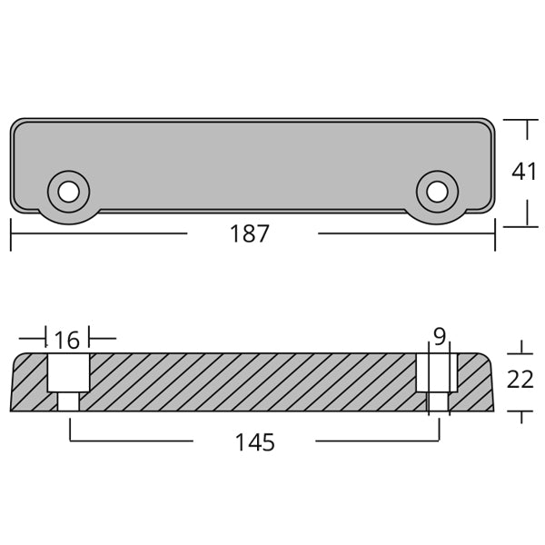 1852, Zinkanode Volvo AQ Antrieb, 832598, Breite 41 mm, Lochabstand 145 mm, Höhe 22 mm, Länge 187 mm, 0,86 kg