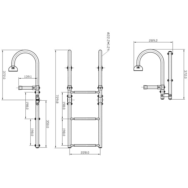 Die Stiege ist mit schwenkbaren Montagebeschlägen ausgestattet, die sich an den Winkel Ihres Bootes anpassen, was die Installation einfach und effizient macht. Der hohe Bogen dient als praktischer Griff, der das Klettern auf das Boot erleichtert.