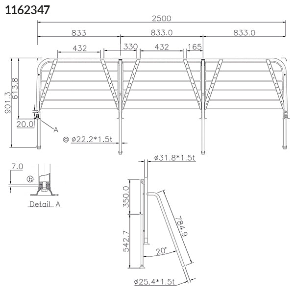 Badeplattform L-170cm D-55cm Ø25mm Rohr, AISI 316 Edelstahl mit Teakholz