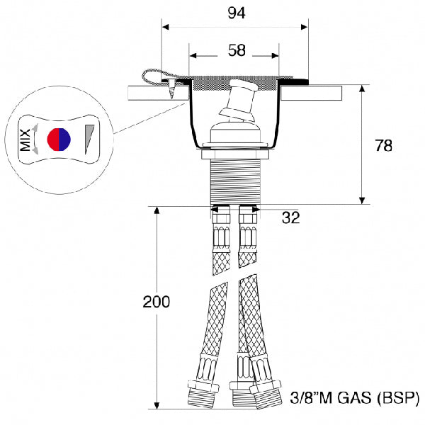 - Gewinde: BSP 3/8"