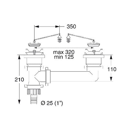 Barka, Bodeneinbau-Doppelablauf 125-320 mm, Ø 25 mm