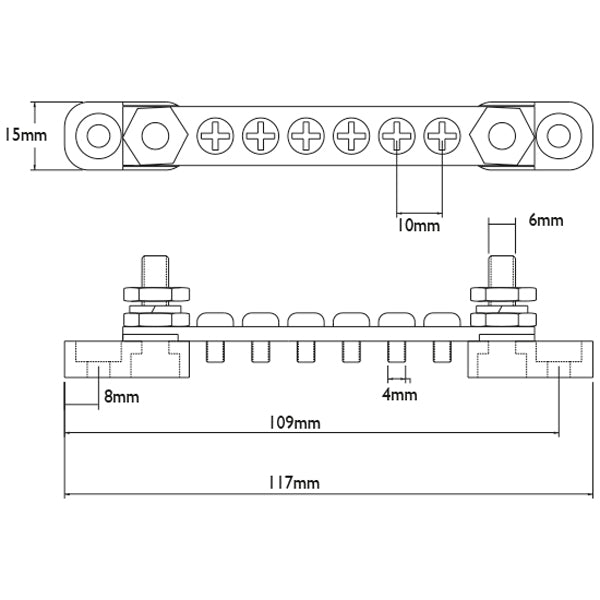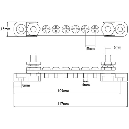 Der Sammelblock ist aus verzinntem Messing gefertigt, was eine hervorragende elektrische Leitfähigkeit und Korrosionsbeständigkeit gewährleistet. Die isolierten Kunststoffmontagefüße erleichtern die Installation und sorgen für Sicherheit. Mit 2 Eingängen und 6 Ausgängen ist dieser Sammelblock perfekt geeignet, um Strom in Ihrem System zu organisieren und zu verteilen.