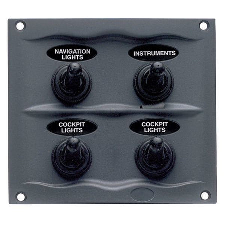 BEP, Spritzwassergeschützte Schalttafel mit 4 Schaltern, 12V, IP56, 95 x 107 mm