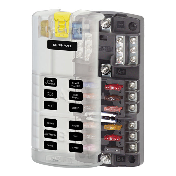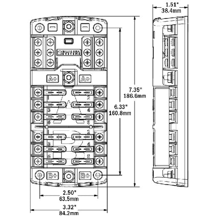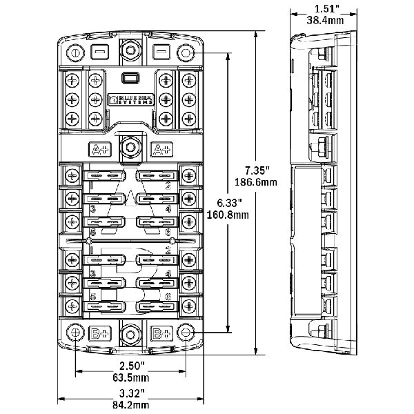 Blue Sea, Sicherungshalter 6+6 ATO/ATC, 30 A, 100 A max, 84,2 mm x 186,6 mm