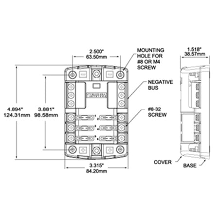 Blue Sea, Sicherungshalter für 6 ATO/ATC-Sicherungen mit Minus-Schiene, 30 A, 100 A, 84,2 mm x 124,3 mm