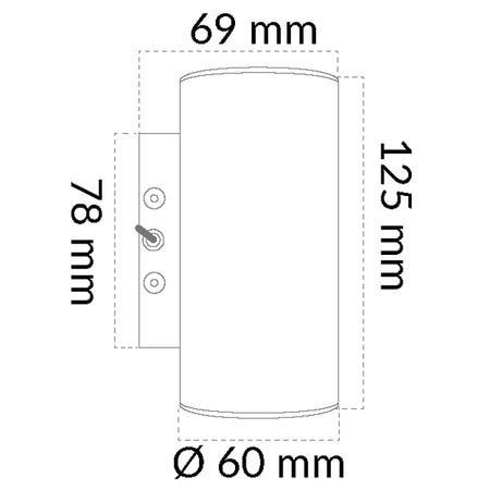 - Abmessungen: Höhe: 125 mm, Tiefe: 69 mm, Ø: 60 mm
