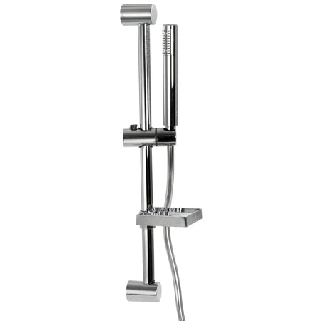 Die elegante Duschstange mit Handbrause und Seifenhalter ist die ideale Lösung, um sowohl Funktionalität als auch Ästhetik in Ihr Badezimmer zu integrieren. Mit einer Höhe von 60,0 cm und einem zeitlosen Design aus verchromtem Messing wird diese Duschstange zu einem stilvollen Element in jeder Dusche.