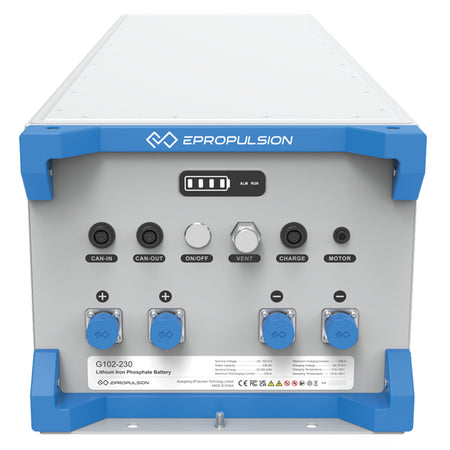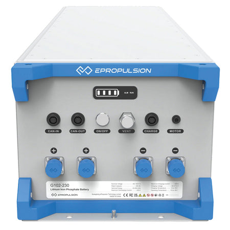 ePropulsion G102-230 er et højkapacitets lithium-jernfosfatbatteri (LiFePO4) designet specifikt til elektriske bådmotorer. Med sine 23.552 Wh og 96V giver batteriet pålidelig strøm til ePropulsion-motorer fra 10kW til 40kW, herunder X/I/P-serien. Den avancerede teknologi sikrer lang levetid med op til 3.500 cyklusser.