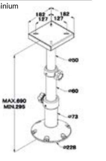 ESM, Verstellbare Tischsäule und Fuß, 290-690 mm, Aluminium, 228 mm