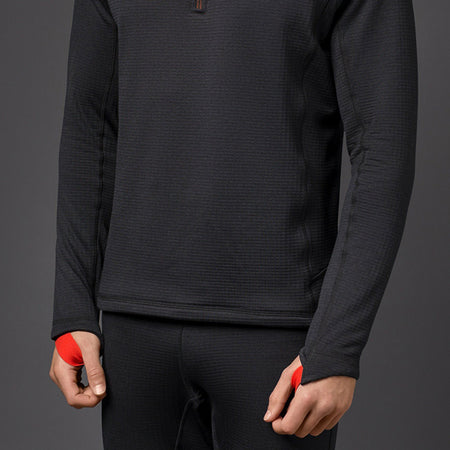 Das Oberteil besteht aus einem innovativen Thermostrickstoff mit 4-Wege-Stretch, der Ihnen optimale Bewegungsfreiheit bietet. Die gebürstete Innenseite fühlt sich angenehm auf der Haut an, während der Reißverschluss am Hals eine anpassbare Belüftung ermöglicht.