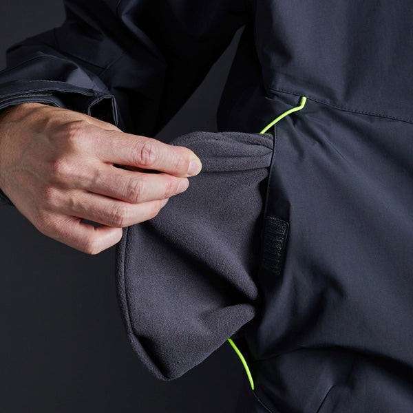 Die Jacke besteht aus einem 2-lagigen beschichteten Stoff, der eine langlebige, wasserabweisende und atmungsaktive Oberfläche bietet. Mit vollständig versiegelten Nähten gewährleistet sie eine wasserdichte Abdichtung, und das nicht-absorbierende, schnell trocknende Futter sorgt für zusätzlichen Komfort. Egal, ob Sie auf dem Boot oder an Land sind, können Sie sich darauf verlassen, dass diese Jacke Sie schützt.