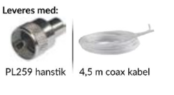 - Inklusive: PL259 Stecker und 4,5 m Koaxialkabel