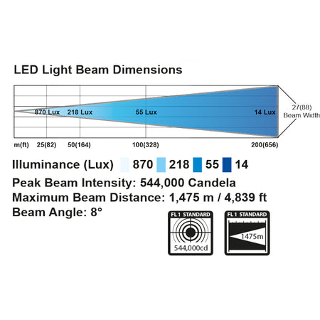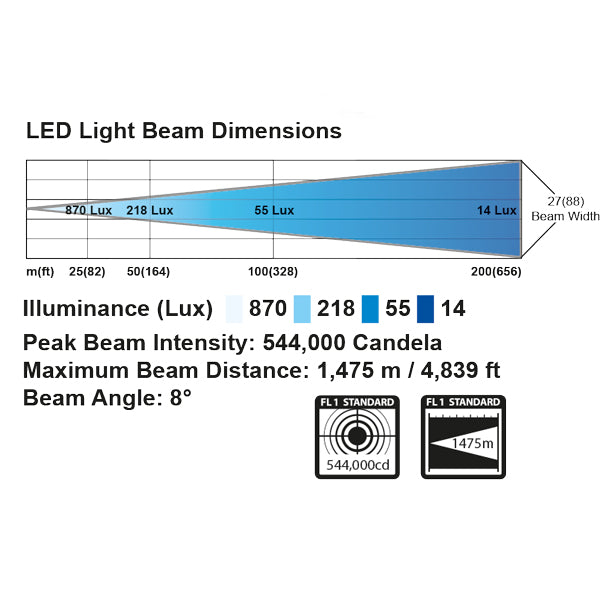 - Reichweite: Bis zu 1400 Meter bei 0,25 Lux