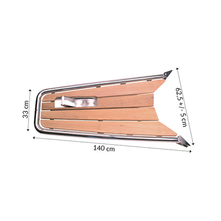 Heckplattform mit Ankerrolle, 140x62,5 cm, AISI 316 Edelstahl, Teak, inkl. Universalhalterung