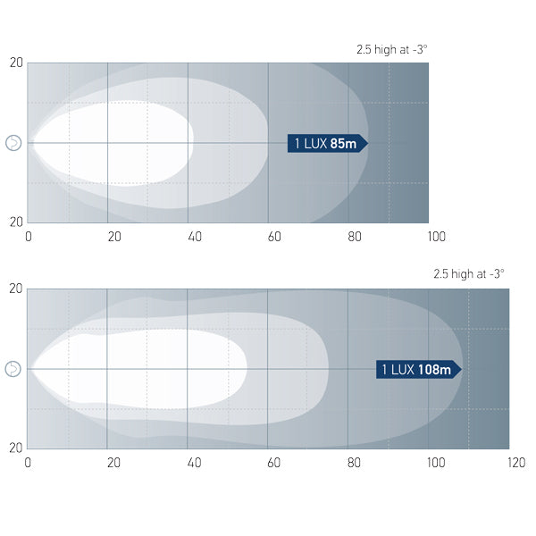 ·Lysfordeling:** Bredstrålende – perfekt til dæksarbejde, cockpit og nærområder