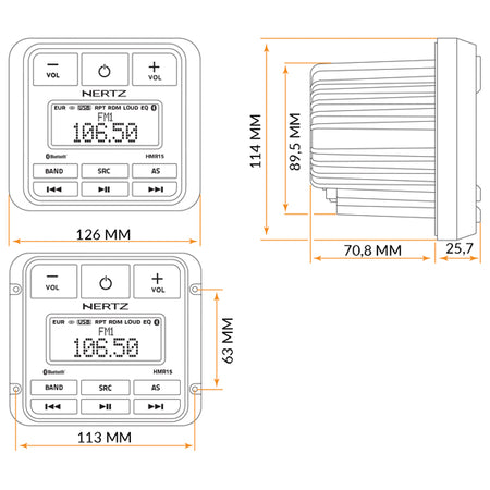 Hertz, HMR 15 D DAB Marine Radio med Bluetooth 5.0 og IP66 Beskyttelse