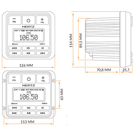 Hertz, HMR 15 Marine Radio med Bluetooth® 5.0 og 2,8" DOT Matrix Display