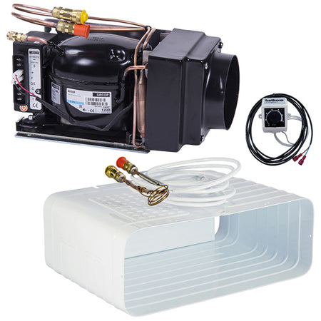 Das Isotherm Fryzesystem 2501 Luftkühlung ist die perfekte Lösung für alle, die eine integrierte Gefrierlösung in ihrem Boot installieren möchten. Dieses luftgekühlte System verwendet einen Ventilator, um Luft durch den Kondensator zu blasen, was eine effiziente Wärmeabfuhr gewährleistet. Der Kompressor kann bis zu 2 Meter von dem Verdampfer entfernt installiert werden, dank der mitgelieferten flexiblen Kupferrohre, was Ihnen Freiheit bei der Installation gibt. Es ist wichtig, dass der Kompressoraum gut belüftet ist, um einen optimalen Betrieb sicherzustellen.