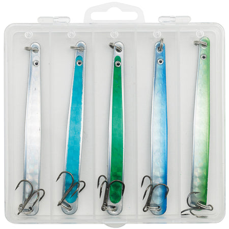 Entdecken Sie die Effizienz der Kinetic Belone Flash/Silky Blinker, die speziell entwickelt wurden, um Hornhecht, Meerforelle und Makrele anzulocken. Dieses Set enthält fünf hochwertige Blinker, die sowohl für Anfänger als auch für erfahrene Angler ideal sind.