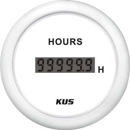Kus, Digitaler Betriebsstundenzähler 0-99999,9 Stunden, Weiß, Ø 52 mm, 12/24 V, IP67