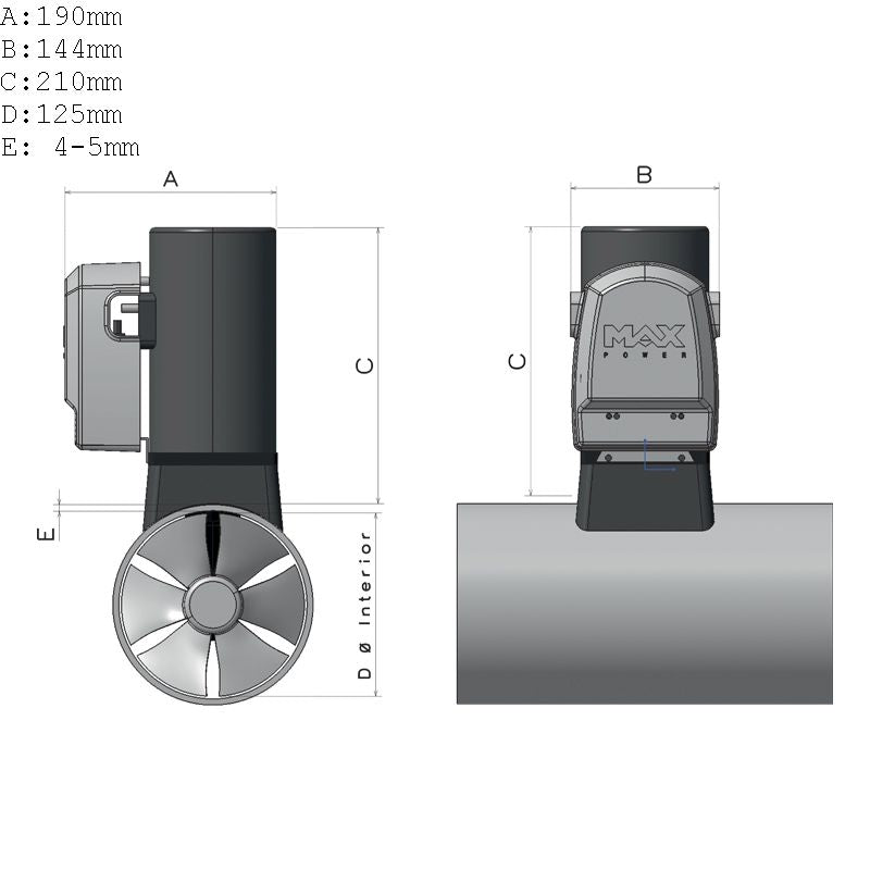 Max Power, Bugstrahlruder 35, Komposit/Mono, 12V, 17-34 ft, 3,6 PS, 125 A, 9,6 kg