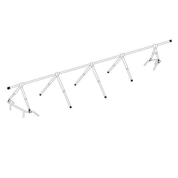 Stativet består af 5 dæksben, der placeres strategisk mod rælingskanten, ruffens tag eller i cockpittet efter behov. Den modulære opbygning gør det nemt at tilpasse stativet til netop din båd, og du kan udvide konstruktionen med ekstra dele efter behov.