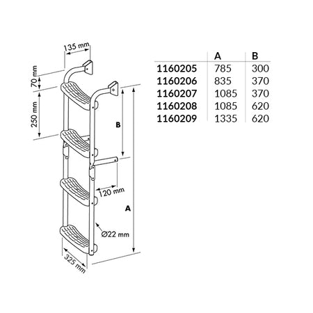 - Stufen: 2 feste + 3 klappbare Stufen