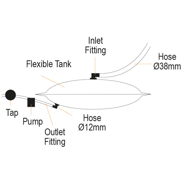 Der Tank wird mit einem geschweißten Tankfitting-Adapter sowie zwei Fittings für Befüllung und Entnahme geliefert, was eine problemlose Nutzung gewährleistet. Die flexible Konstruktion ermöglicht es, den Tank bei Nichtgebrauch zu verstauen, was wertvollen Platz spart.