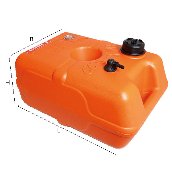 Die RINA-zugelassene Brennstofftank von Nuova Rade bietet Ihnen die Sicherheit und Zuverlässigkeit, die Sie für Ihre Bootsausflüge benötigen. Mit einem Fassungsvermögen von 22 Litern und hergestellt aus HDPE (hochdichtem Polyethylen) gewährleistet dieser Tank eine sichere und effiziente Lagerung von Brennstoff.