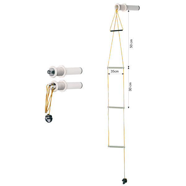 Die Leiter ist mit drei robusten Stufen aus Polypropylen und einem Handgriff aus rostfreiem Stahl ausgestattet, die eine sichere und stabile Besteigung gewährleisten. Die Stufen sind in einem strapazierfähigen Polyamidrohr untergebracht, das mit einer grauen Polypropylenabdeckung versehen ist, was es einfach macht, die Leiter bei Bedarf herauszuholen.