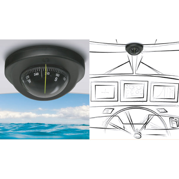 Der Riviera Astra Kompass ist speziell für die Deckenmontage konzipiert und das Ergebnis jahrelanger Innovation im Bereich der Kompasse für Yachten und Arbeitsboote. Dieses Kompassmodell ist ideal für Schiffsanleger, die den Platz auf der Brücke maximieren möchten, der oft mit Bildschirmen und magnetischen Störfaktoren überfüllt ist.