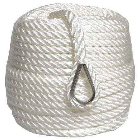 Robline, Ankerleine 3-strängig mit Kausche, weiß, 10 mm x 40 m, Bruchfestigkeit 1600 kg