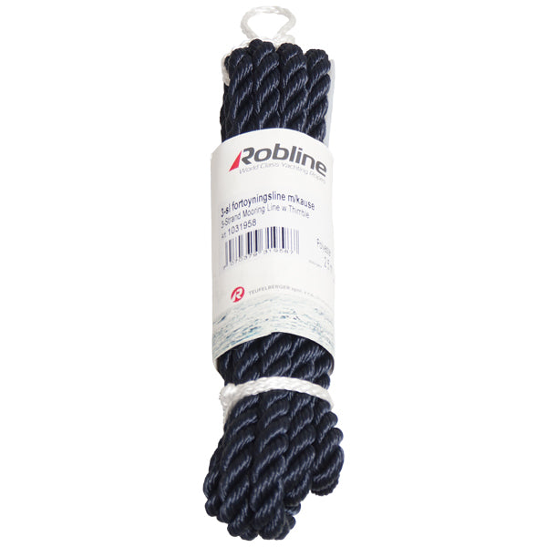 Robline, Festmacherleine 3-strängig mit Kauschen, Navy, 16mm x 4m, Bruchkraft 3800 kg