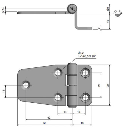 Das Scharnier hat eine Länge von 67,5 mm, eine Breite von 37 mm und eine Höhe von 10 mm, was eine optimale Passform für viele verschiedene Türen und Tore bietet. Es ist so konzipiert, dass es einfach zu installieren ist und eine stabile sowie sichere Schließung gewährleistet.