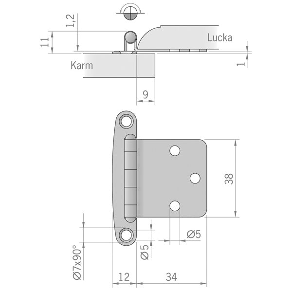 Roca, Scharnier RF, 46x38mm, Rostfreier Stahl AISI 304