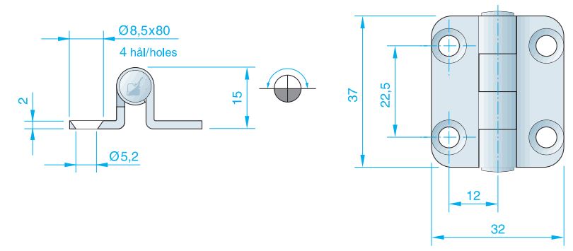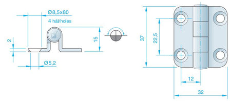 Roca, Scharnier RF, AISI 304, 32x37mm